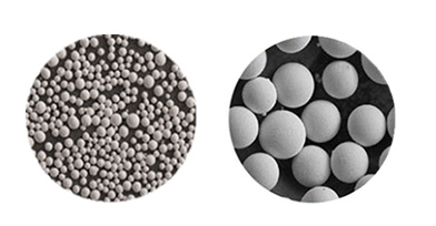 外觀(guān) | 表面光滑、光澤均勻無(wú)異物 | 表面光滑、球形度好、粒度分布均勻 |